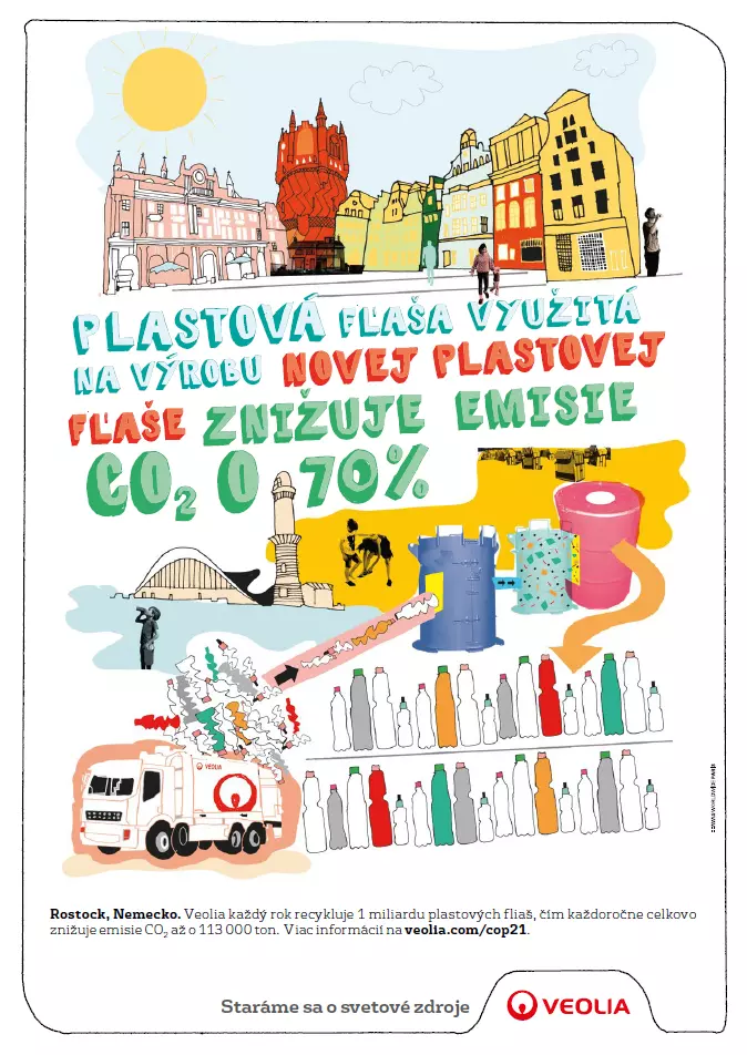Rostock, Nemecko. Veolia každý rok recykluje 1 miliardu plastových fliaš, čím každoročne celkovo znižuje emisie CO2 až o 113 000 ton. Viac informácií na http://www.veolia.com/en/campaign2015.