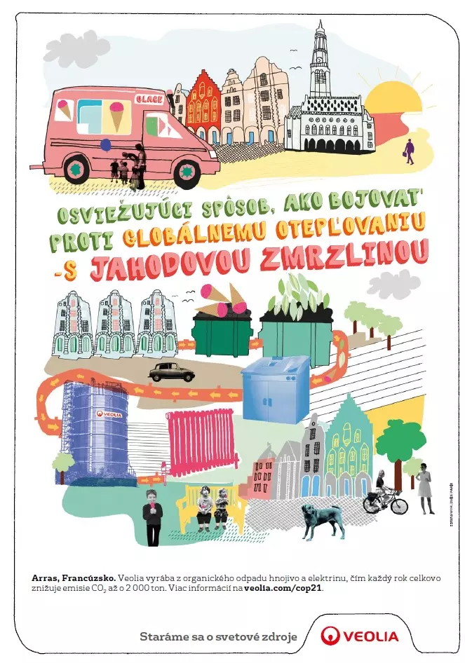 Arras, Francúzsko. Veolia vyrába z organického odpadu hnojivo a elektrinu, čím každý rok celkovo znižuje emisie CO2 až o 2 000 ton. Viac informácií na http://www.veolia.com/en/campaign2015.
